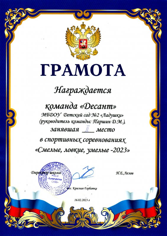 2 место в спортивных соревнованиях "Смелые, ловкие, умелые - 2023"