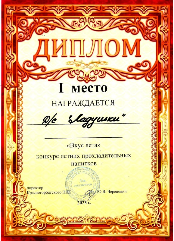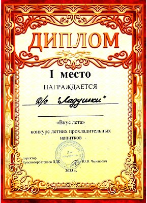 1 место в конкурсе летних прохладительных напитков "Вкус лета"